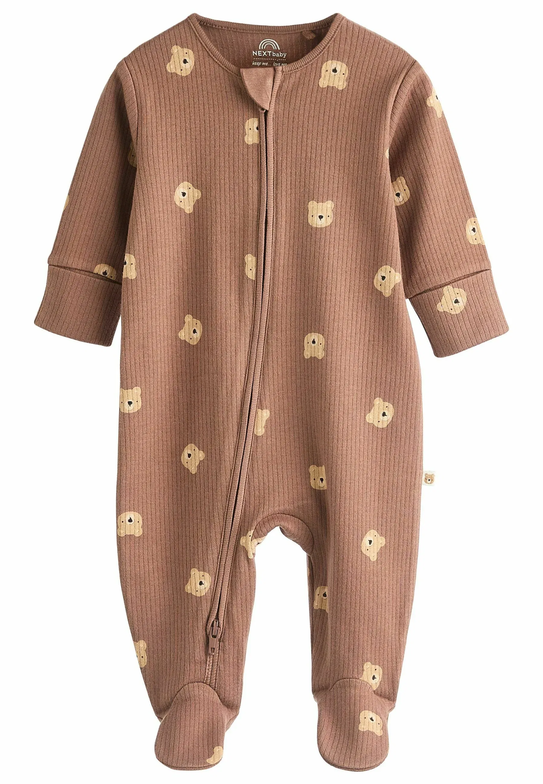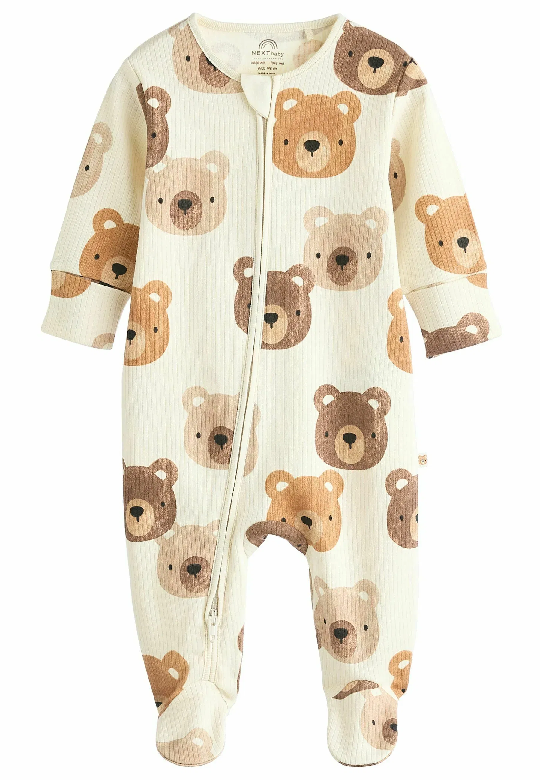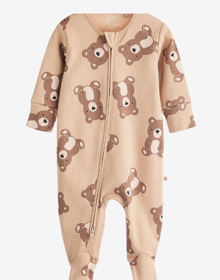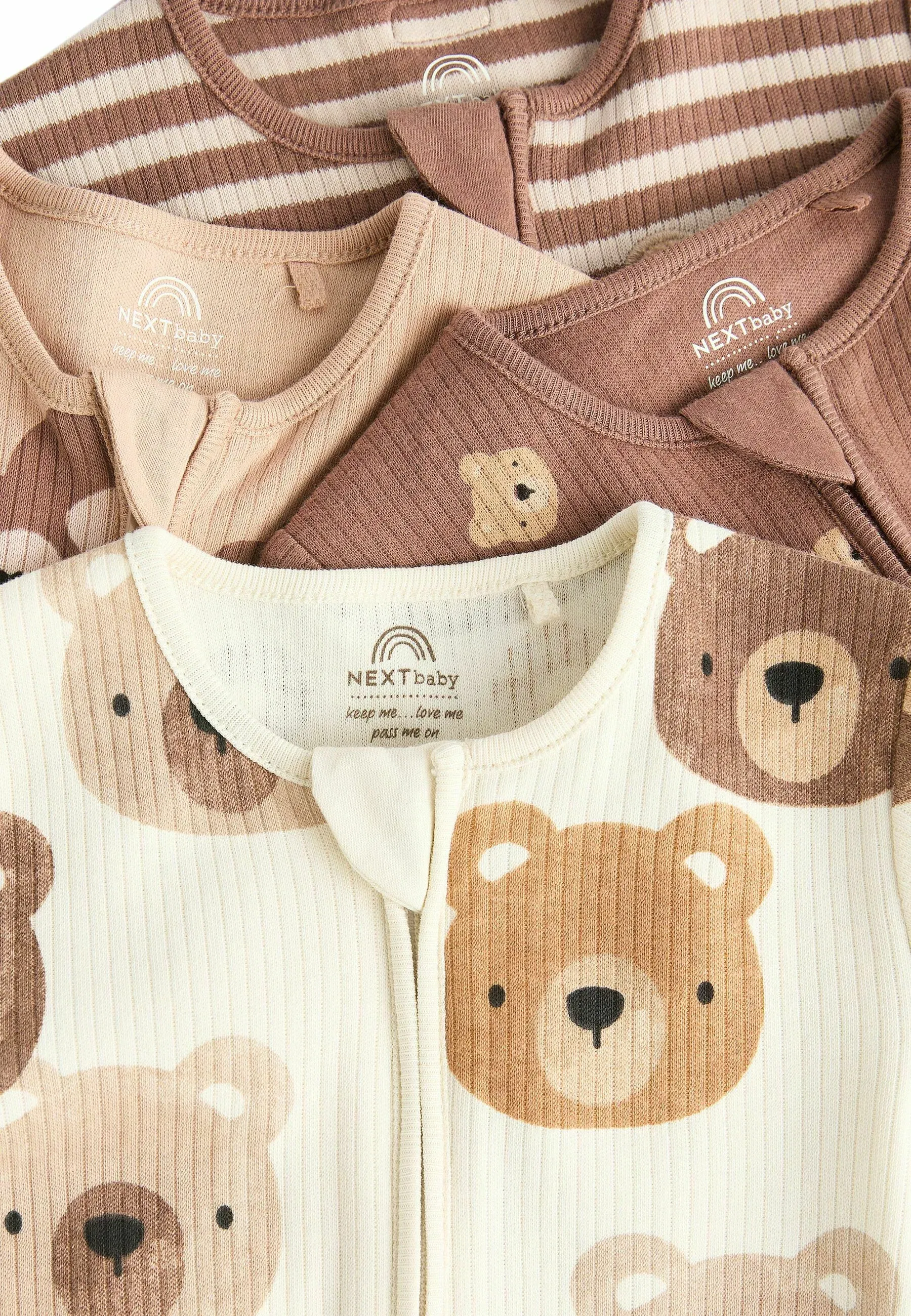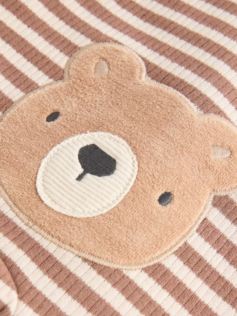 Estampas variadas de ositos y rayas en tonos nude, marrón y crema