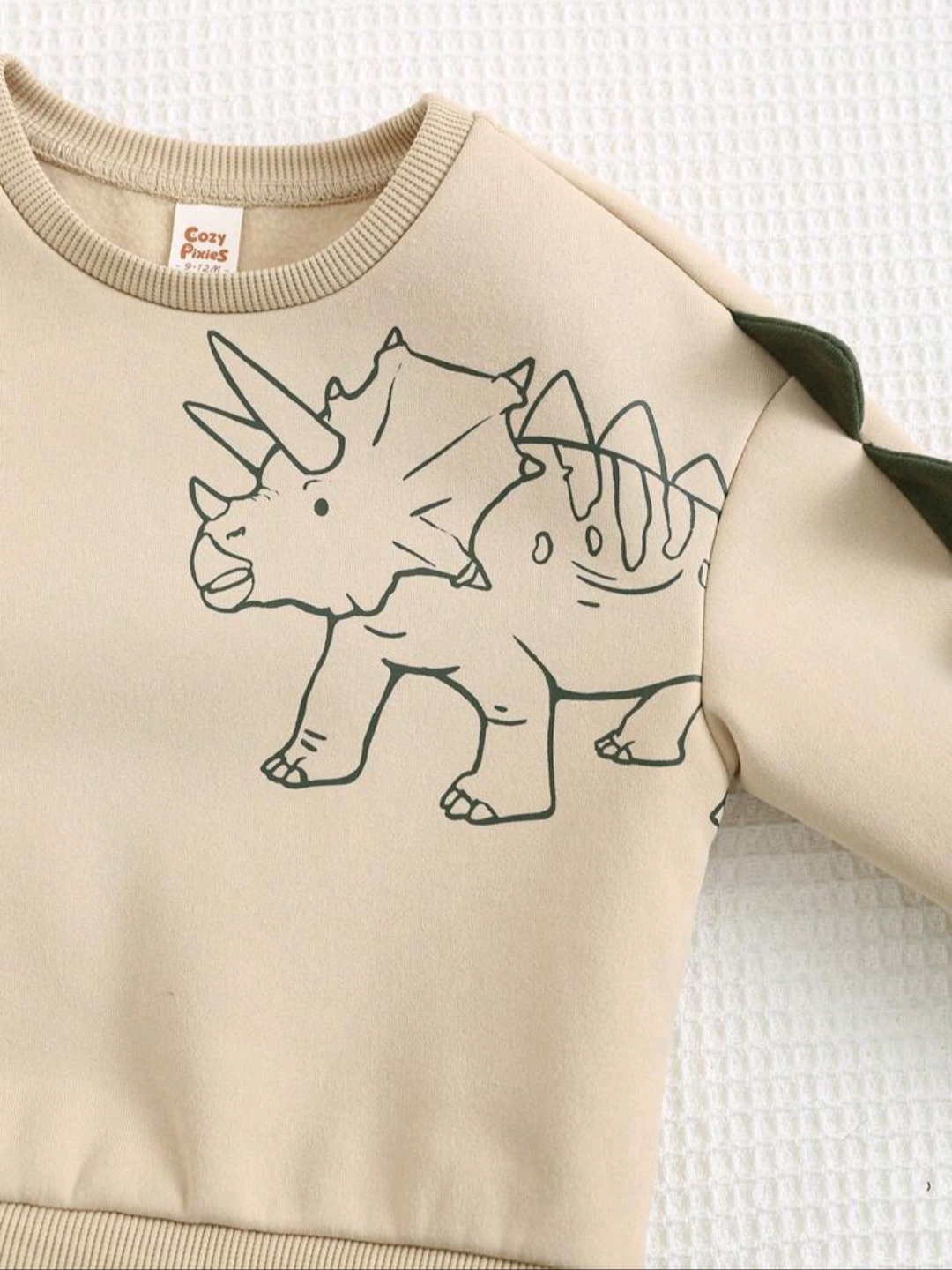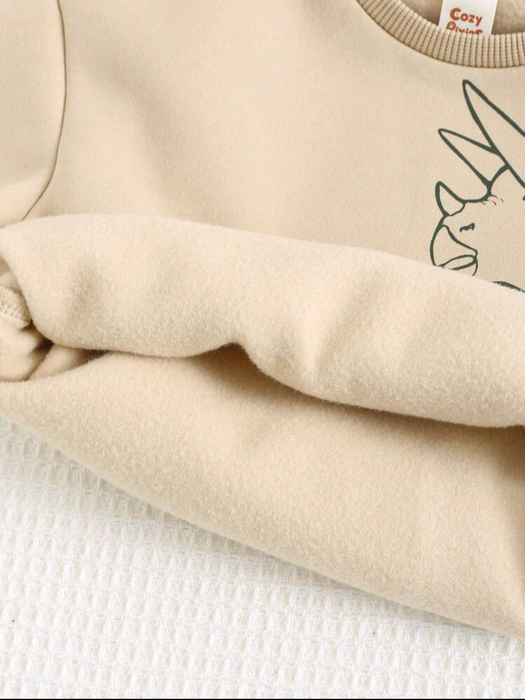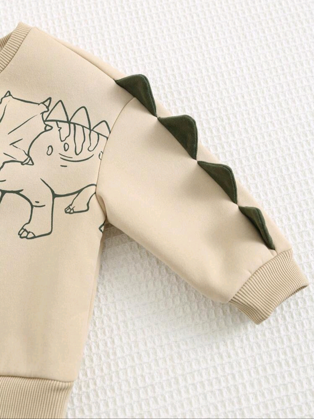 Como cuando los chicos se disfrazan sin querer, este bucito es más que abrigo: es aventura, ternura y juego. El triceratops estampado —con sus tres cuernitos amigables— parece estar listo para salir a explorar, y las púas suaves en la manga hacen que cada movimiento se sienta un poco más salvaje (pero siempre en modo mimoso).
