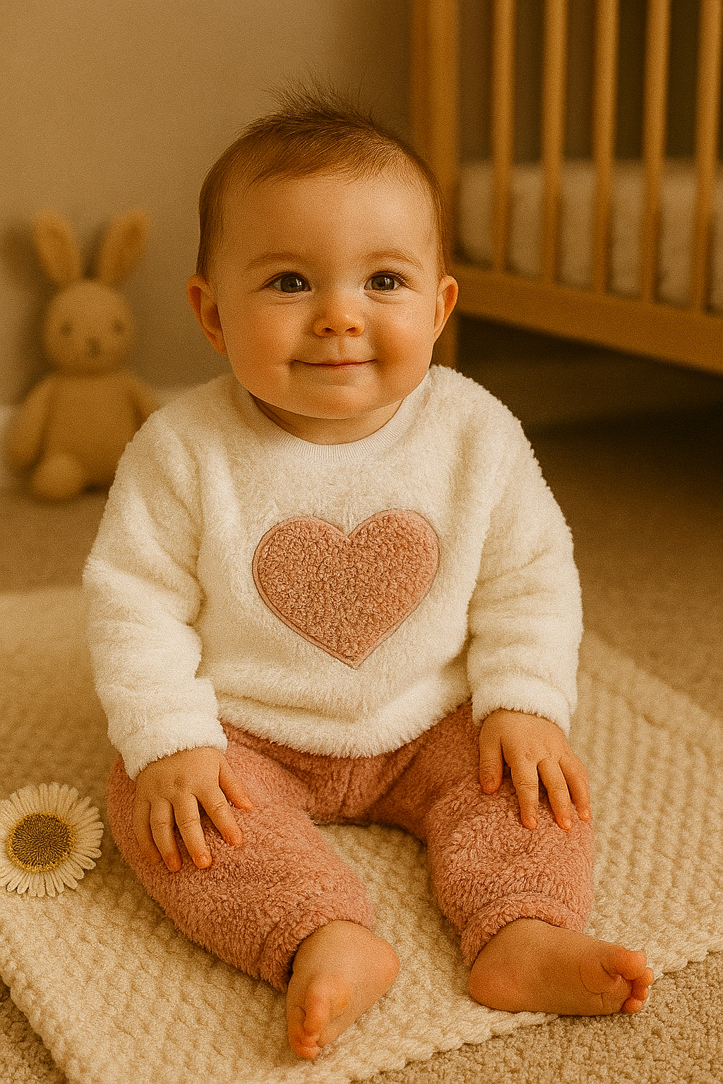 Este conjunto abriga como un abrazo y brilla con la dulzura de un corazón suave. Ideal para tardes de cuentos, meriendas caseras y paseos cortitos al sol.
