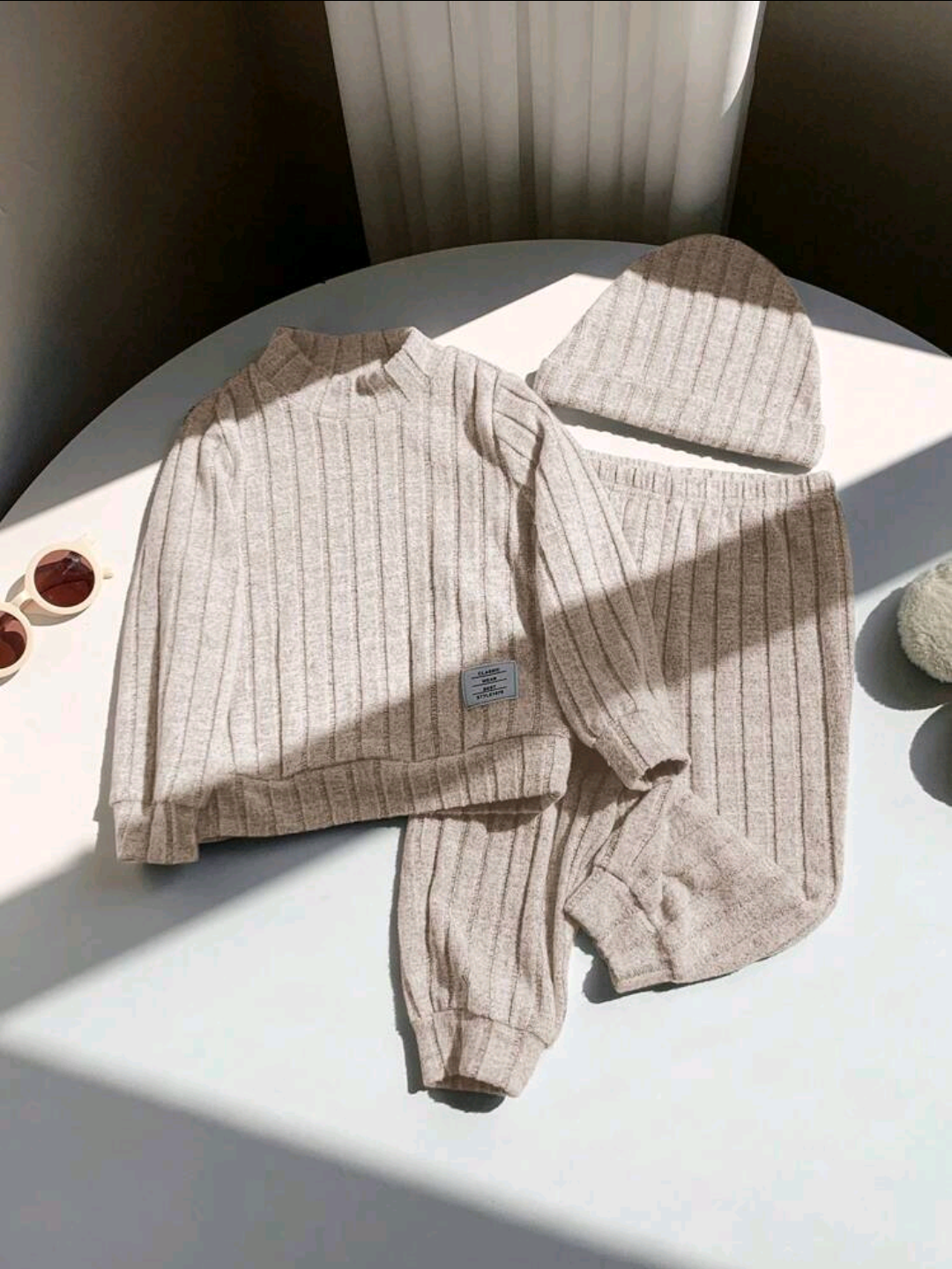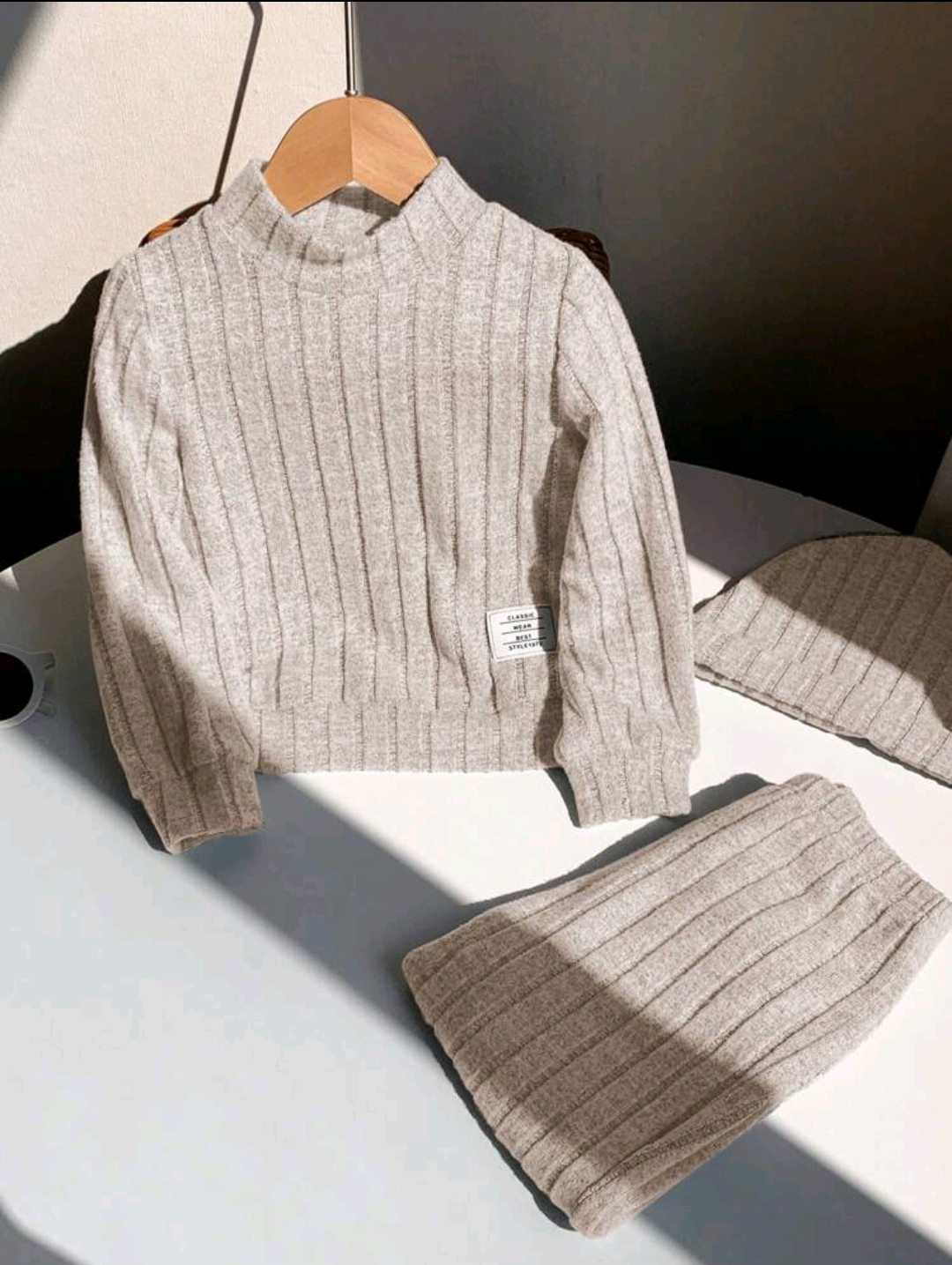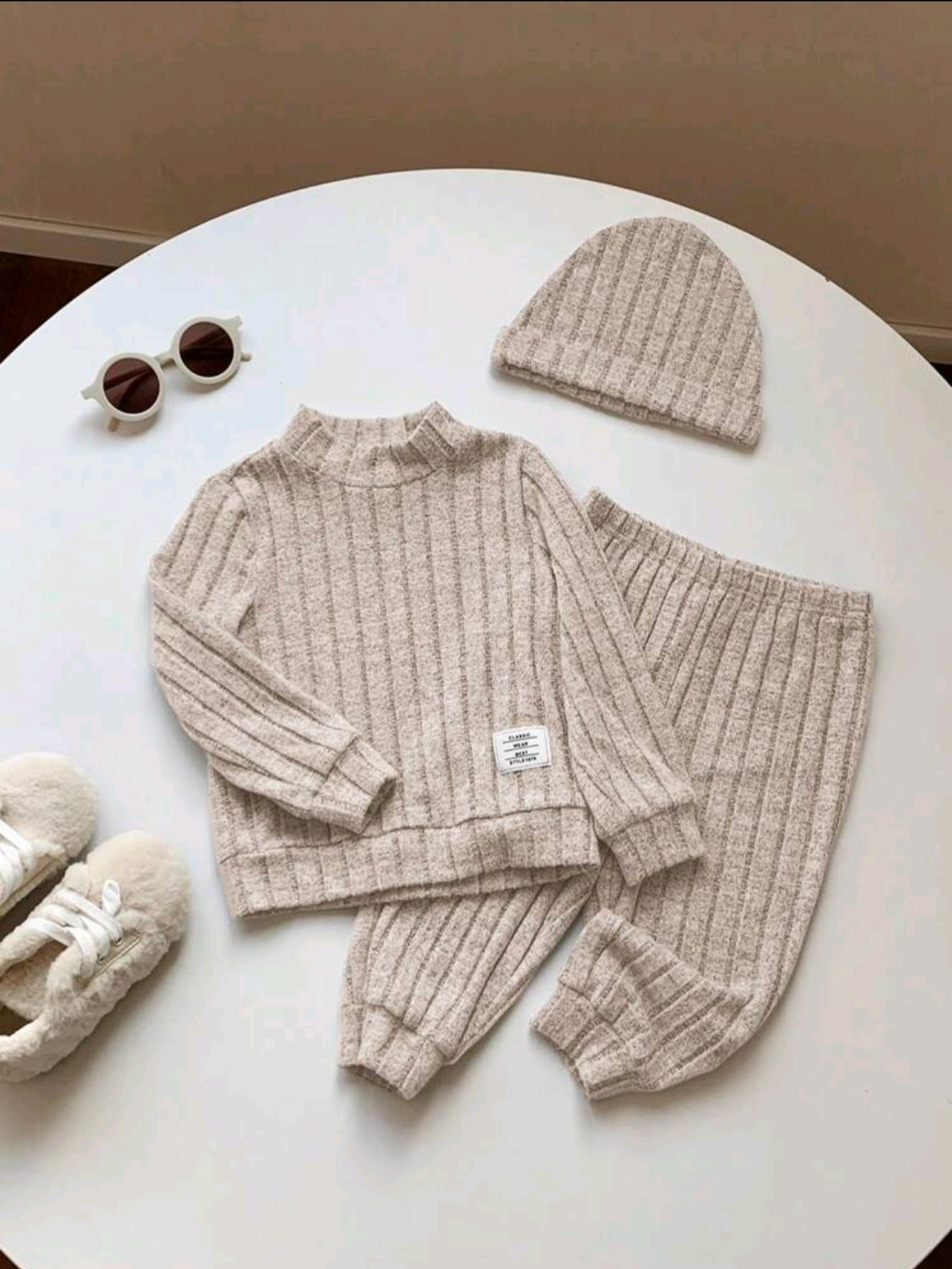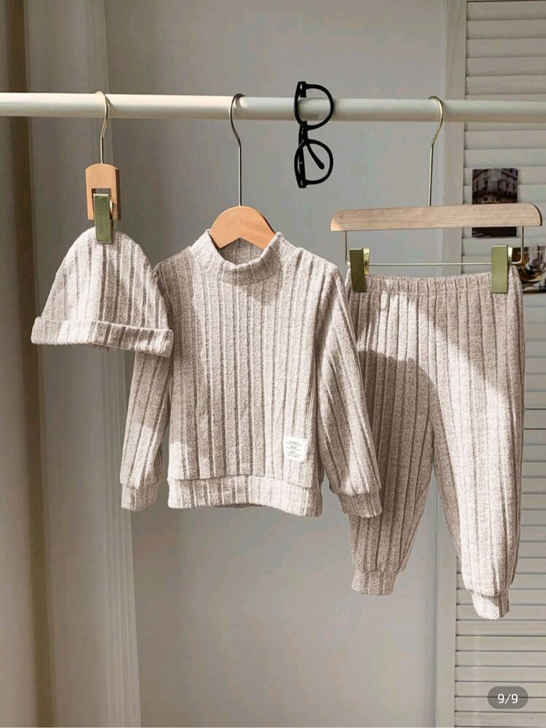 • Conjunto de 3 piezas: buzo tejido, pantalón cómodo y gorrito